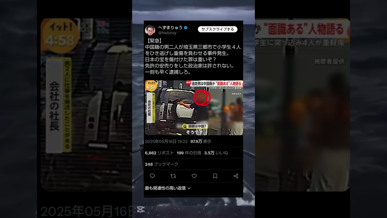 スポンサーリンク へずまりゅうがXを更新 #shortvideo #X #ツイッター #へずまりゅう #難しい #事故 #高評価お願いします スポンサーリンク 動画 Twitter Facebook はてブ Pocket LINE コピー 2025.05.19 2025.05.18 スポンサーリンク これは日本人でもやる人はやってしまうし複雑やな・・・ とりあえず一番は一日でも早く子供たちが元気になることを願う